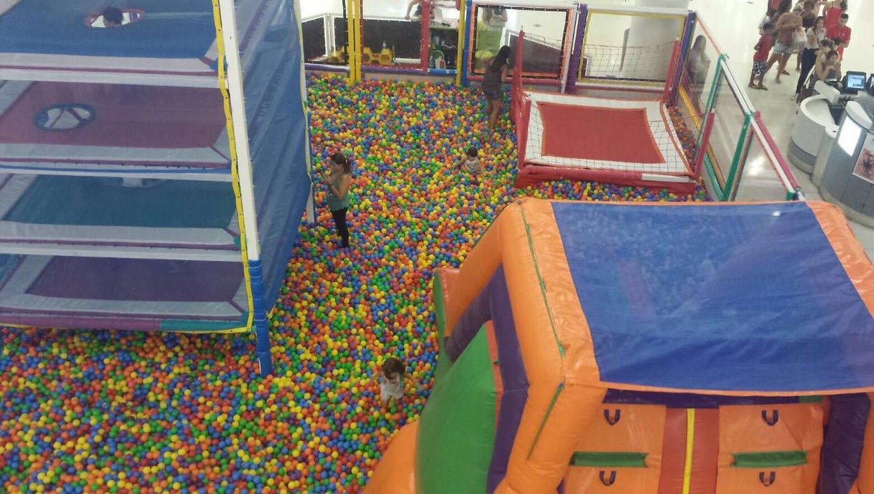 Na praça de eventos do shopping, uma piscina de bolinhas está aguardando a criançada para muita diversão. O preço é também promocional e custa R$ 10,00 (15 minutos) e R$ 15,00 (30 min).