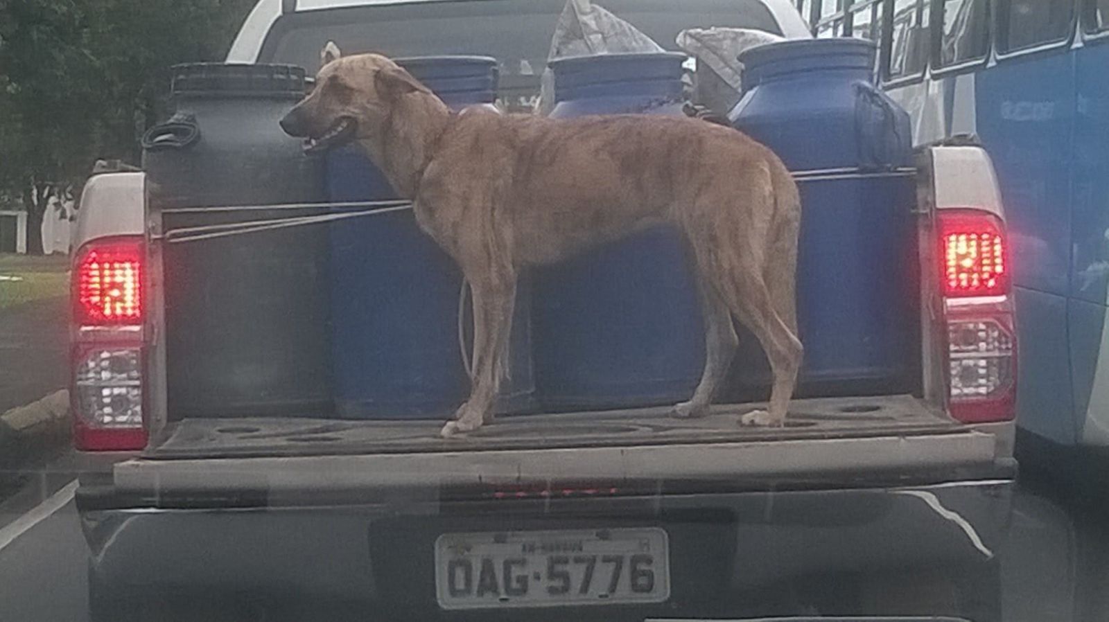 MANAUS - Um cachorro foi flagrado sendo levado sem nenhum tipo de segurança nesta terça-feira (27), no cruzamento entra a Avenida São Jorge e Estrada da Compensa.