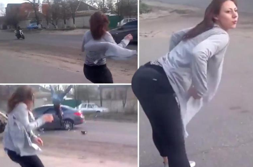 Uma performance improvisada e sensual de uma mulher na calçada acabou mal, na Ucrânia.