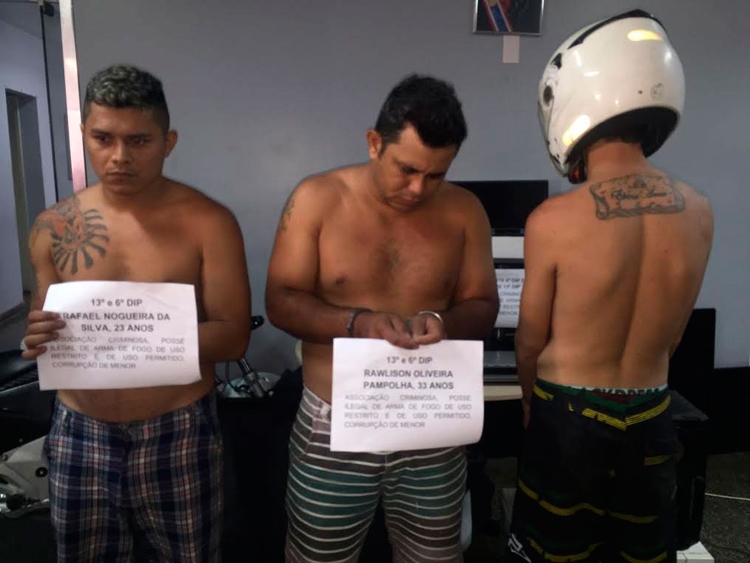 Manaus/AM - A equipe do 13º Distrito Integrado de Polícia (DIP) prendeu, em flagrante, por posse ilegal de arma de fogo, por volta das 11h30, da última sexta-feira, dia 5, no bairro Cidade de Deus, zona Norte de Manaus, Rawlison Oliveira Pampolha, 33 e Rafael Nogueira da Silva, 23, envolvidos no roubo a uma tornearia, fato ocorrido no dia 20 de janeiro deste ano, no mesmo bairro da prisão deles. Na ocasião, a polícia apreendeu um adolescente de 17 anos que agia em parceria com a dupla, a qual também foi autuada nos crimes de corrupção de menor e associação criminosa.