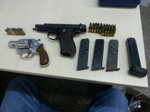 Na casa de Diego, a polícia apreendeu duas pistolas e um revólver calibre 38, muita munição e vários carregadores, todos municiados.