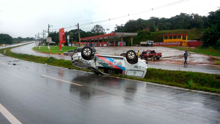 Manaus|AM - Na manhã desta terça-feira (10) uma viatura da 8ª Companhia Independente da Polícia Militar (CIPM) capotou em alta velocidade na rodovia Manoel Urbano (AM-070), em Iranduba, distante 27 km de Manaus.