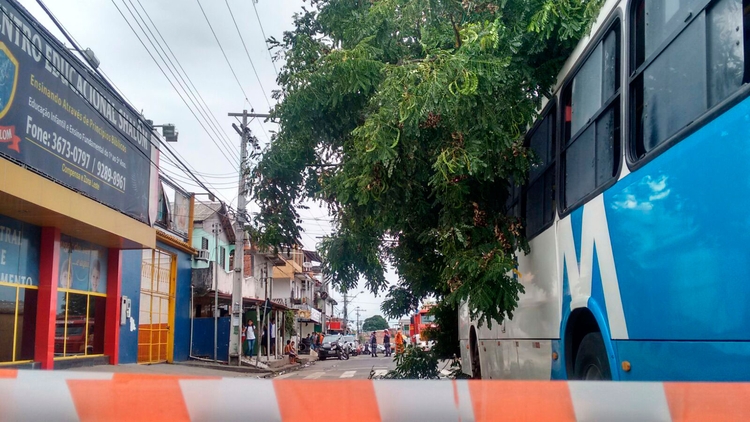 Manaus/AM - No início da tarde desta quinta-feira (18), por volta das 13h, passageiros do ônibus da linha 013 viveram momentos de medo na rua T6, bairro Compensa, Zona Oeste da capital. Tudo porque uma árvore caiu em cima do coletivo e derrubou consigo fios de alta tensão na pista.