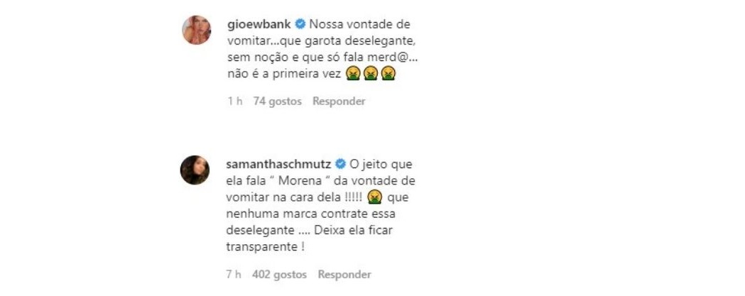 Ao falar a palavra ‘morena’, Dayane fez uma expressão diferente que alguns internautas apontaram como uma careta. Ela continuou: "As marcas, às vezes, não querem marquinha de lingerie, nada dessas coisas" , finalizou.