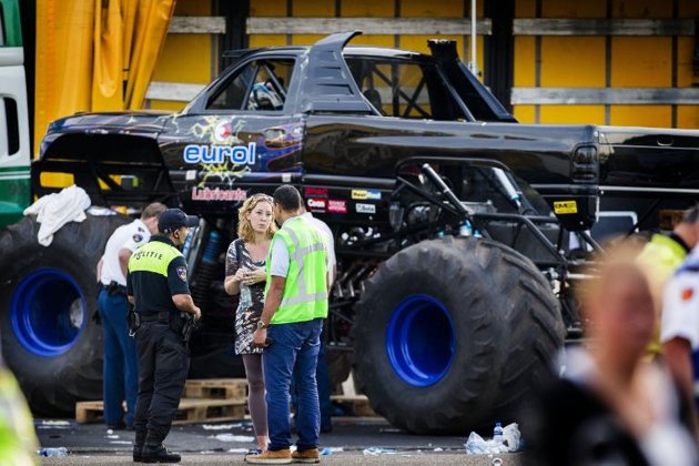 Aconteceu em Bruxelas, na cidade de Haaksbergen, no leste da Holanda neste ultimo domingo 28, durante uma apresentação de com "monster trucks" (caminhonetes com roda gigantes), o motorista perdeu o controle e atingiu dois adultos e uma criança que morreram na hora, outras 15 pessoas ficaram feridas.