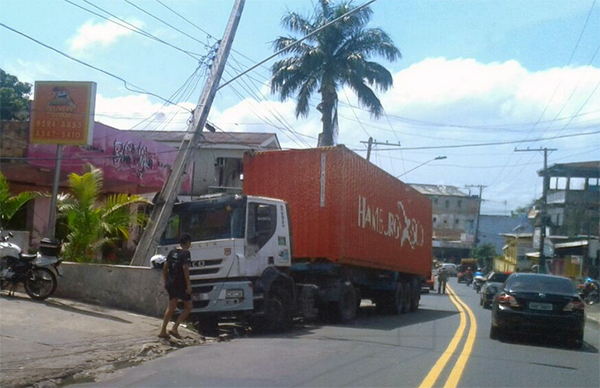 Manaus/AM - Na tarde de sexta-feira, 13, uma carreta perdeu a direção quando transitava na avenida Laguna, bairro Lírio do Vale, zona Oeste, e findou por colidir com um poste. Não houve feridos.