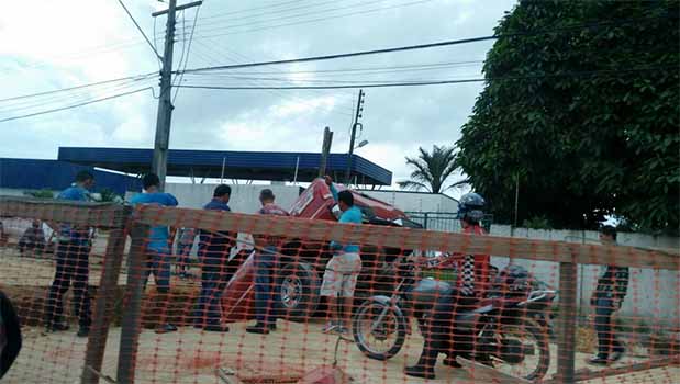 Manaus/AM - Pick up caiu em vala na rua Dona Otília, no bairro Campos Sales, zona Norte. Não houve feridos, mas deu trabalho retirar o carro, uma F1000, da vala cavada em rua próxima da loja Bemol da rodovia AM-010, prolongamento da avenida Torquato Tapajós.