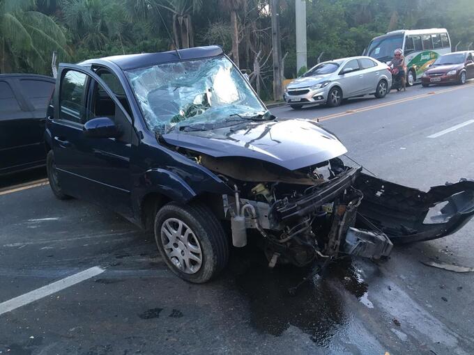 Manaus/AM - Um violenta colisão entre dois veículos parou o trânsito na avenida Santos Dumont, popularmente chamada de estrada do Aeroporto, no bairro do Tarumã, Zona Oeste de Manaus, deixou ocupantes dos carros presos as ferragens.