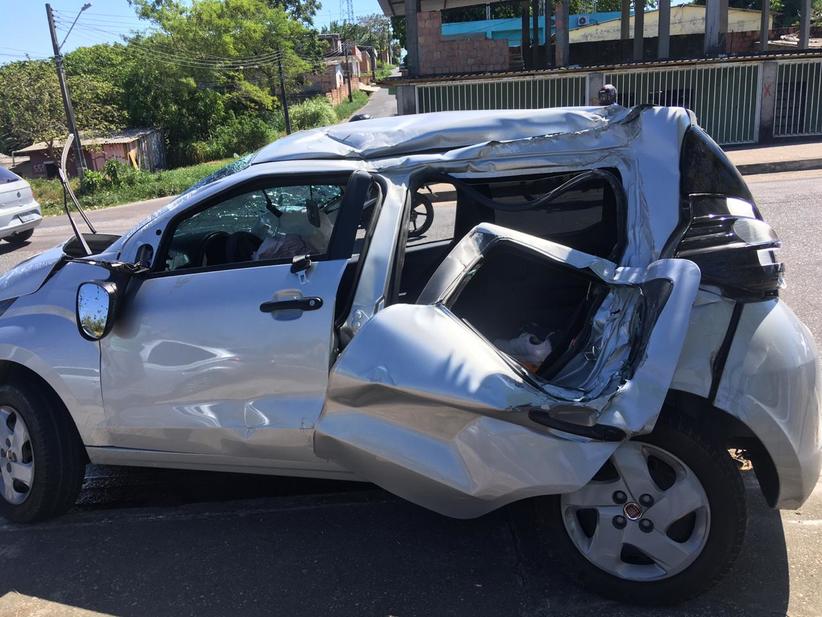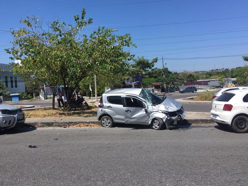 Carros ficam destruídos em acidente na avenida das Torres, em Manaus