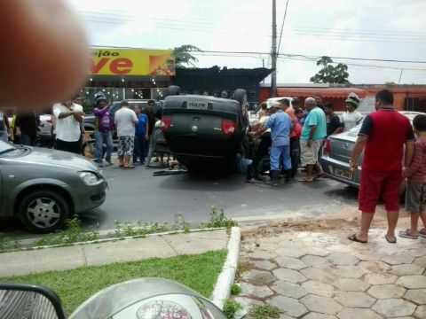 Manaus/AM – Por volta das 12h30, o Volkswagen de placas JMV-5761 capotou na avenida Nilton Lins, próximo ao Aeroclube de Manaus, Zona Norte.