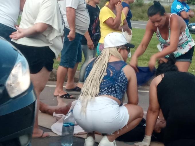 Segundo testemunhas, o acidente ocorreu entre três carros e uma moto. Um casal estava com escoriações na pista e um homem teve ferimentos mais graves, um corte profundo no braço e muito sangue no local. A moto ficou despedaçada e em chamas.