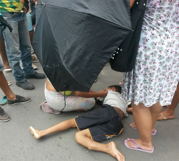 Manaus/AM - O condutor da motocicleta Honda Fan, de placas NOI-0542, atropelou, por volta do meio-dia desta quinta-feira, 26, um menor, na rua Professora Maria J. Brígido, no loteamento Recreio Canaã, no bairro Novo Israel, zona Norte, causando fratura exposta na perna direita do menor que foi socorrido por equipe do Samu.
