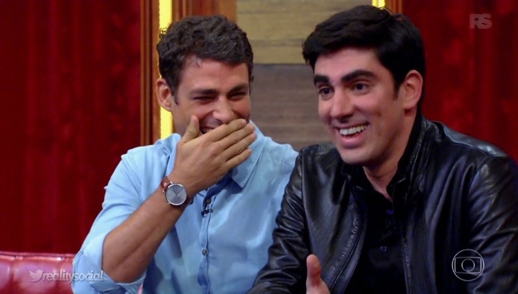O ator se soltou durante conversa com Marcelo Adnet e mostrou o bom humor dando beijinho de esquimó com o apresentador e dançando ao lado de Rodrigo Simas e Ricardo Macchi.