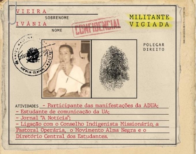 A militância dentro e fora da redação fizeram de Ivânia Vieira um alvo da vigilância militar. A docente conta que participou da colaboração de pequenos jornais, como os citados pelo SNI Porantim (CIMI Norte 1), Parafuso (Pastoral Operária), Paneiro (Comissão Pastoral da Terra) e Poranga (Pastoral da Juventude) também monitorados na Ditadura. Publicações como estas e vários encontros, dos quais a professora afirma ter tido a “honra” de participar, são citados, segundo ela, no Difusão AC/SNI/CMA (Assessoria de Comunicação do SNI do Comando Militar da Amazônia).