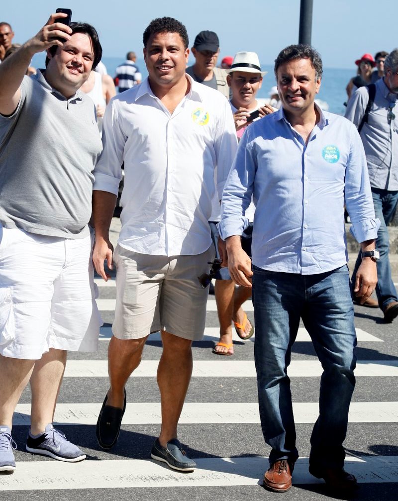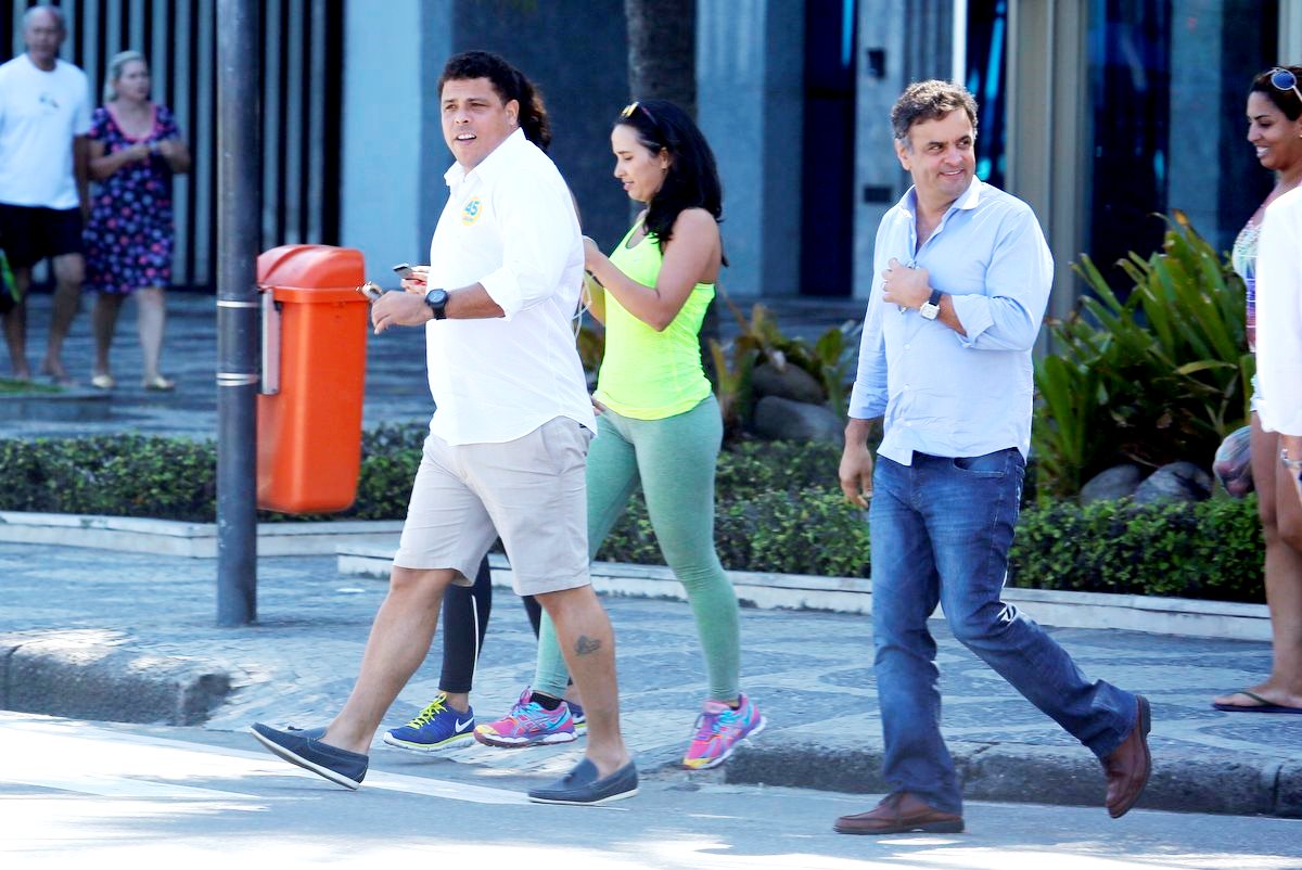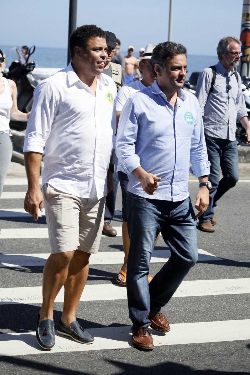 Ronaldo Fenömeno deixou a sua cobertura no Leblon, Zona Sul do Rio de Janeiro, na tarde do domingo (14), para acompanhar Aécio Neves (PSDB) na sua campanha como candidato à presidência do Brasil.