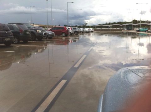 Denúncias recebidas pelo Portal do Holanda informam que no estacionamento do Aeroporto Internacional Eduardo Gomes, que alaga por falta de escoamento das águas da chuva, os usuários têm sofrido queda em razão do piso alagado