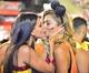 Após ser flagrada aos beijos com Ana Carolina, atriz tenta disfarçar dando selinhos em amigas