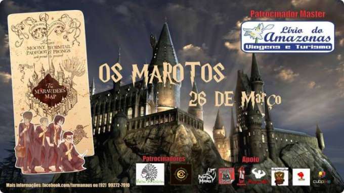 O Evento foi criado de fãs para fãs, de forma que todos os participantes terão oportunidade de se sentir como um verdadeiro aluno de Hogwarts. O evento consistirá em competições entre as quatro casas de Hogwarts (Corvinal, Grifinória, Lufa-Lufa e Sonserina), exibição de dois filmes da Saga com direito a pipoca e refrigerante, além de alguns sorteios bem especiais no dia do evento. Os Marotos – Aniversário de James Potter, acontecerá no primeiro albergue da região norte: Hostel Manaus, que está localizado na rua Lauro Cavalcante nº 231 Centro (próximo ao SINE da AV. Joaquim Nabuco). O evento será das 14h às 21h no dia 26 de março (Domingo). O principal patrocinador do evento é a agência LÍRIO DO AMAZONAS viagens e turismo. Entre outros patrocinadores estão: Nativo Amazônico e Ecoforest Adventure. A cobertura do evento será feita por dois canais do Youtube, o canal Rabisco do Dia e o canal Igor Siqueira e pela Pulpnix Company Pictures. E nossos principais apoiadores do evento são: Potterday Manaus, Taverna Nerd, Cubpixel Identidade Visual e o canal Personal Boss.