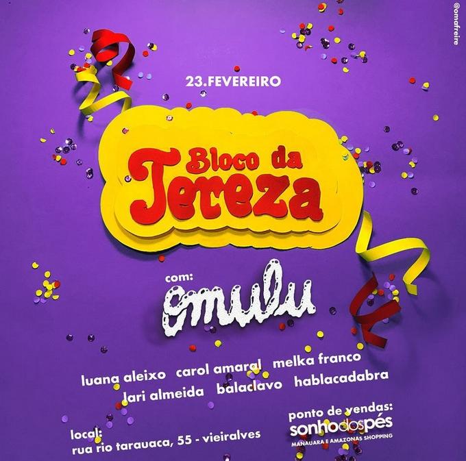 O Bloco oficial acontece em 23 de fevereiro, no Vieiralves, Rua Rio Tarauaca, 55, a partir das 15h. Os ingressos estão à venda no site Sympla e nas lojas Sonho dos Pés do Amazonas Shopping e Manauara Shopping somente no dinheiro.
