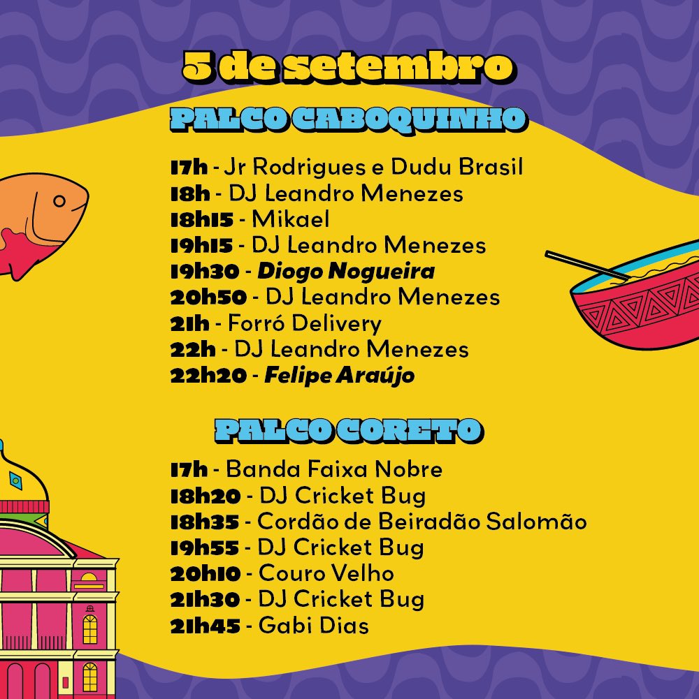 Manaus/AM - A prefeitura de Manaus divulgou a programação completa do Passo a Paço 2022 que vai acontecer nos dias 3, 4, 5 e 6 de setembro. O evento também conta com espaços teatrais e gastronômicos e será realizado nas proximidades do Paço da Liberdade no Centro Histórico de Manaus. Confira a programação completa!