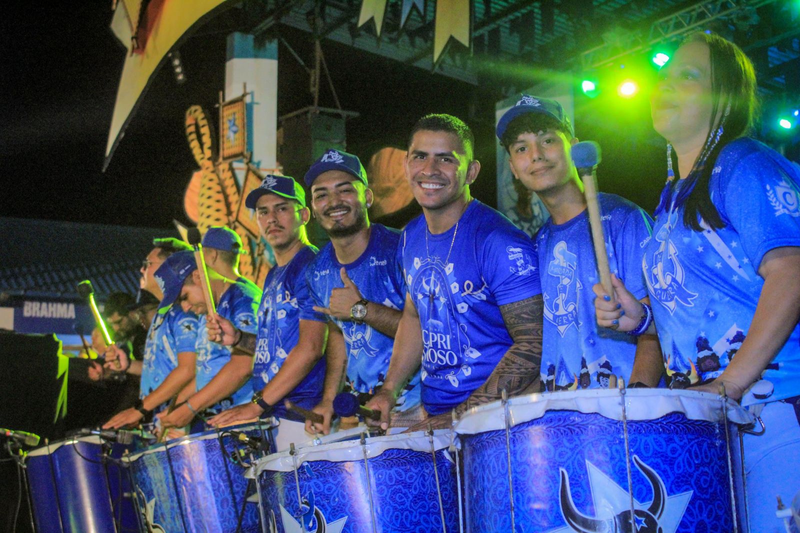 Manaus/AM - O último Ensaio Show da temporada 2024 do Boi-Bumbá Caprichoso homenageou a história e o ritmo campeão da Marujada de Guerra. A festa celebrada neste sábado, 15, no curral Zeca Xibelão, reuniu ritmistas, itens oficiais e a nação azul e branca num momento de muita toada e celebração.