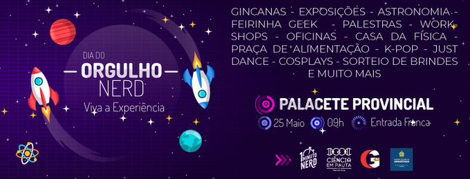 Manaus/AM - O dia 25 de Maio é a data em que o Planeta Terra comemora o orgulho de ser nerd e Manaus está preparada para um grande evento em homenagem à Vida, ao Universo e Tudo o Mais. No próximo sábado (25), no Palacete Provincial (Praça Heliodoro Balbi, Centro), acontece a celebração do Dia do Orgulho Nerd, das 09h às 20h. O público estimado é de cinco mil pessoas e a entrada é gratuita.