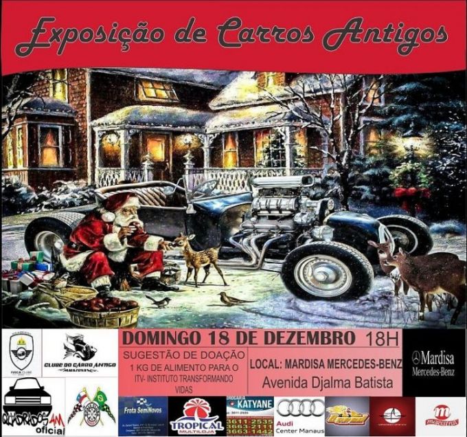 MANAUS/AM - Neste domingo 18 de dezembro ocorre na Mardisa Mercedes Benz, localizada na Av Djalma Batista, a partir das 18h, um encontro para quem é apaixonado por carros antigos, uma exposição com modelos com mais de 20 anos de fabricação e raridades da Chevett, Kadett, Gol, Opala, Fusca está sendo preparada para o público. Para participar do evento basta levar 1 kilo de alimento não perecível que será arrecado para o Instituto Transformando Vidas.