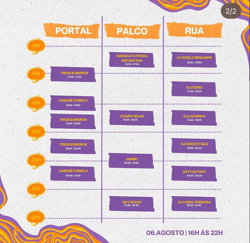 De acordo com o organizador João Fernandes, 13 atrações musicais se reúnem neste domingo. "Te esperamos. São muitas atrações, são 25 espositores de alimentação, bebida e muito mais. Estamos fazendo o que fazemos de melhor, que é ocupar a rua", disse.