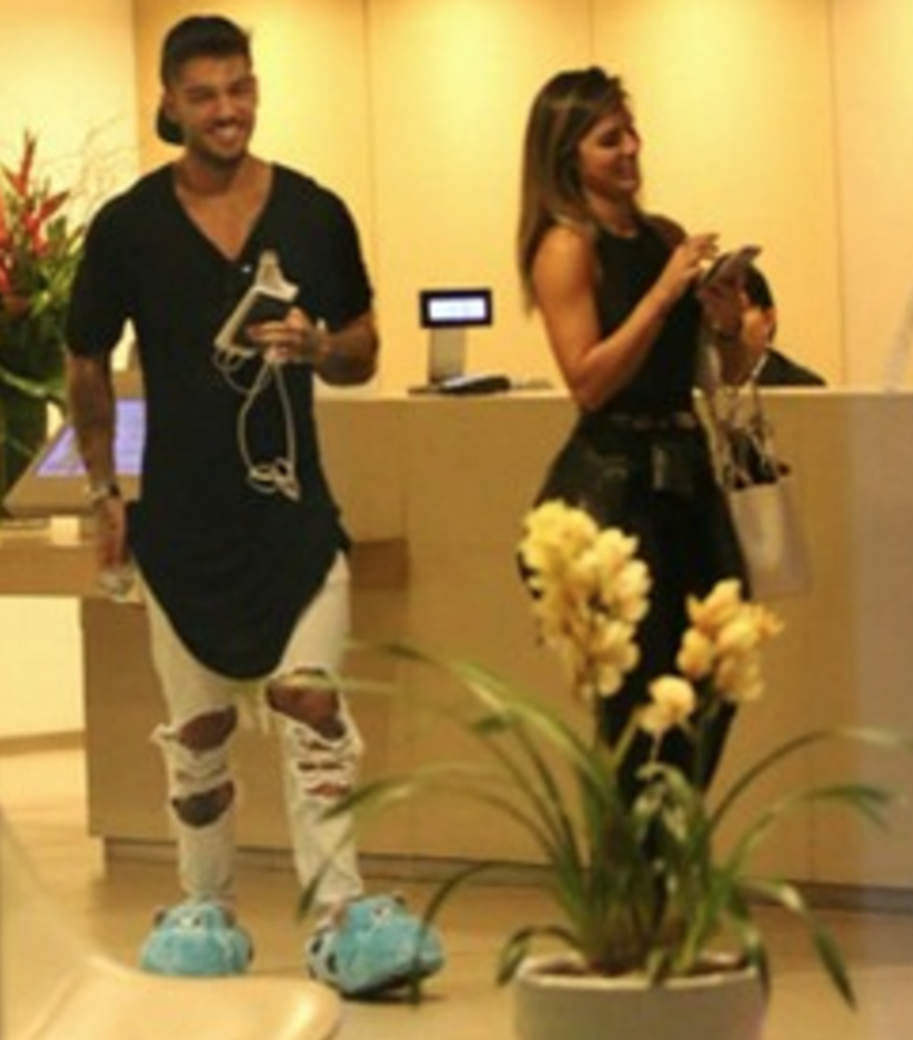 A apresentadora estava comentando uma foto do cantor em que ele aparece indo ao cinema com a nova namorada. O problema da loira foi com a escolha do sertanejo para o sapato: ele optou por uma pantufa bem “cheguei" com temática de desenho animado, para ir ao shopping.