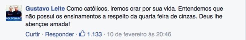 “…para nós que filhos de Deus não existe quarta-feira de cinzas, mas sim quarta-feira do fogo”, diz um trecho da mensagem.