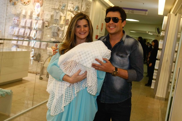 Ela e o marido Wellington Muniz, o Ceará do "Pânico", posaram sorridente com a recém-nascida nos braços.