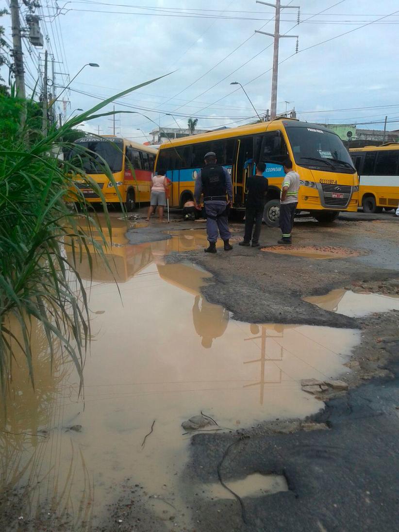Manaus|AM - Nas primeiras horas da manhã desta terça-feira (15) um micro-ônibus alternativo que faz o trajeto até a Bola da Suframa atolou em um dos buracos da avenida Buriti, no Distrito Industrial, zona Leste da capital. Isso gerou uma manifestação na categoria, que interditou de vez a via em protesto.