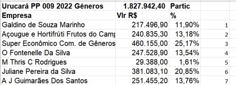 Urucará/AM – A aquisição de gêneros alimentícios para atender as demandas com alimentação das secretarias municipais vão demandar recursos na faixa de R$ 1,8 milhão, conforme pregão presencial nº 009/2022 – SRP/CPL/PMU, que definiu sete empresas fornecedoras.