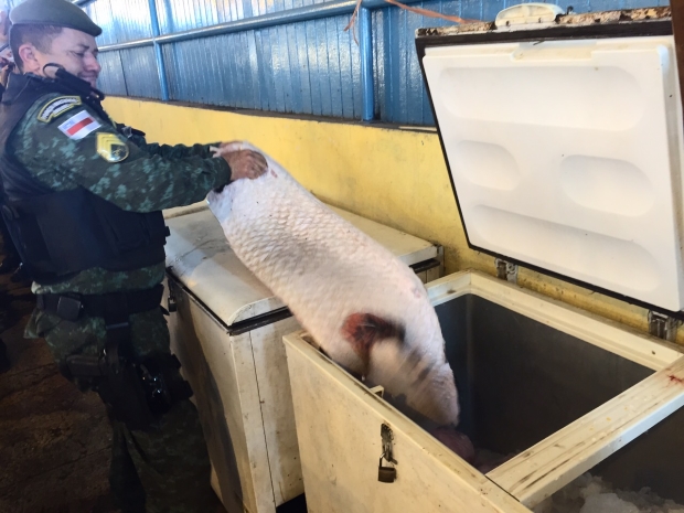 O Batalhão de Policiamento Ambiental da Polícia Militar do Amazonas (BPAmb/PMAM) realizou, na manhã desta terça-feira (24), a apreensão de pirarucu ilegal na feira da Panair. Edivaldo da Silva Rodrigues, 45 anos, estava comercializando aproximadamente 250 Kg de Pirarucu em manta fresca, sem a documentação necessária. O infrator foi preso e conduzido para a Delegacia Especializada em Crimes contra o Meio Ambiente e Urbanismo (DEMA). Segundo a polícia, o infrator é reincidente no cometimento de crimes ambientais. Ele foi preso anteriormente por comercializar pescado em período proibido sem autorização legal.