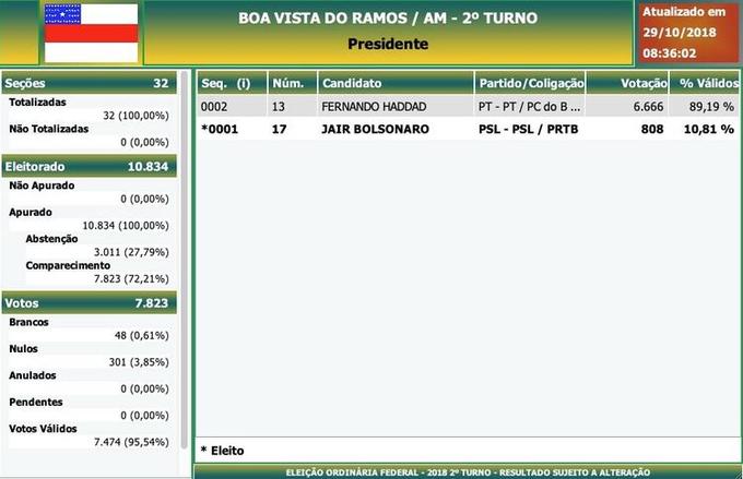 Início Amazonas 2º Turno - Presidência da República - Boa Vista do Ramos