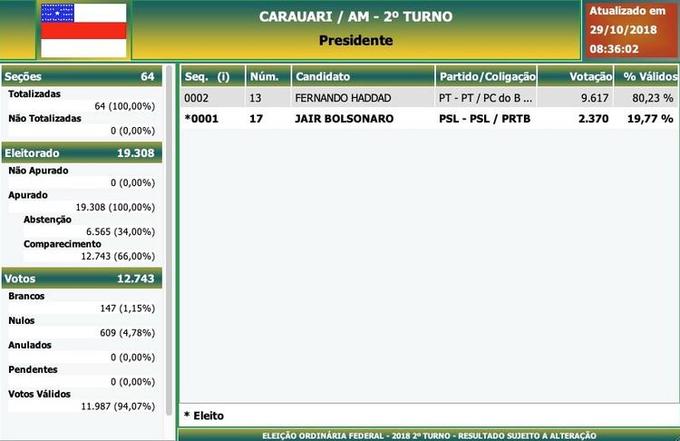Início Amazonas 2º Turno - Presidência da República - Carauari