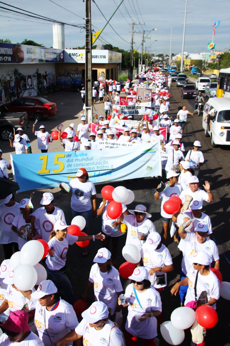 Cerca de 800 pessoas participaram da caminhada que encerrou as atividades da Semana de Combate à Violência Contra o Idoso, na manhã deste sábado, 15, na Avenida Autaz Mirim, Jorge Teixeira, zona Leste. Com o slogan ‘Use o AMOR, Não à Violência’, a campanha é realizada pela Prefeitura de Manaus, por meio da Fundação Doutor Thomas (FDT), em parceria com o Fórum Permanente do Idoso e os Conselhos Municipal e Estadual do Idoso.