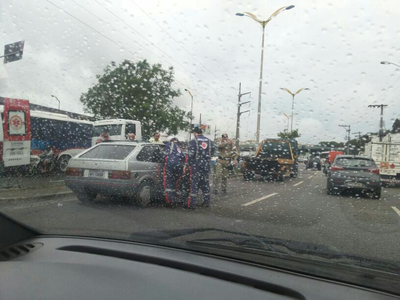 Um acidente acaba de ser registrado por uma de nossas leitoras no Coroado, próximo à feira.