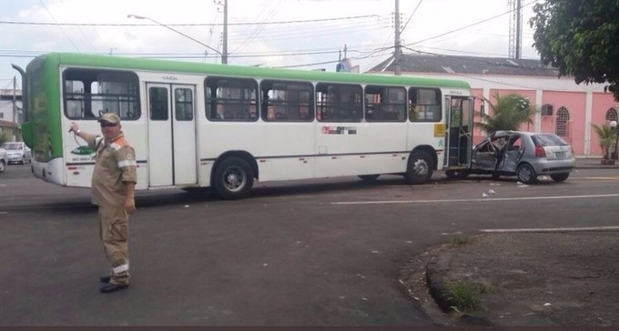 Manaus/AM - Uma mulher e um homem ficaram feridos após uma colisão entre um carro e um ônibus da linha 611 na avenida Borba, bairro Cachoeirinha, na manhã deste domingo (27).