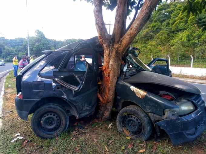 Manaus/AM - Um homem identificado apenas por Diego, de 33 anos, ficou preso nas ferragens de seu carro, após colidir o veículo em uma árvore situada na avenida do Turismo, próximo a igreja Batista, no bairro Tarumã. O acidente aconteceu na tarde desta quinta-feira (18).