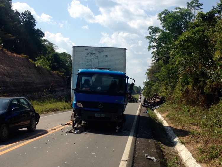 Manaus/AM - Uma colisão entre um caminhão e um carro de passeio deixou uma pessoa morta no km 39 da BR 174. Segundo informações preliminares da Polícia Civil, pelo menos quatro pessoas estavam no veículo que se chocou de frente com a carreta que vinha no sentido contrário. Bombeiros foram acionados para remover uma das vítimas que ficou presa nas ferragens. O condutor do caminhão ainda não teve a identidade confirmada assim como as demais vítimas.