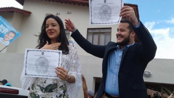 Nas redes sociais ele comemorou com uma foto onde aparece ao lado da irmã, vice prefeita de sua chapa.