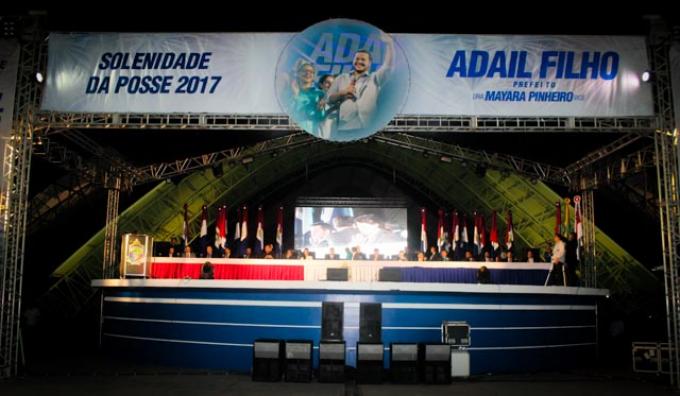 Coari/Am – O prefeito eleito Adail Filho e de sua vice-prefeita e irmã Dra. Mayara Pinheiro, foram empossados em cerimônia no Centro Cultural Carlos Braga neste domingo (1º). O evento reuniu aproximadamente 15 mil pessoas, muitas delas trajando camisas com a imagem dos eleitos e do ex-prefeito Adail Pinheiro.