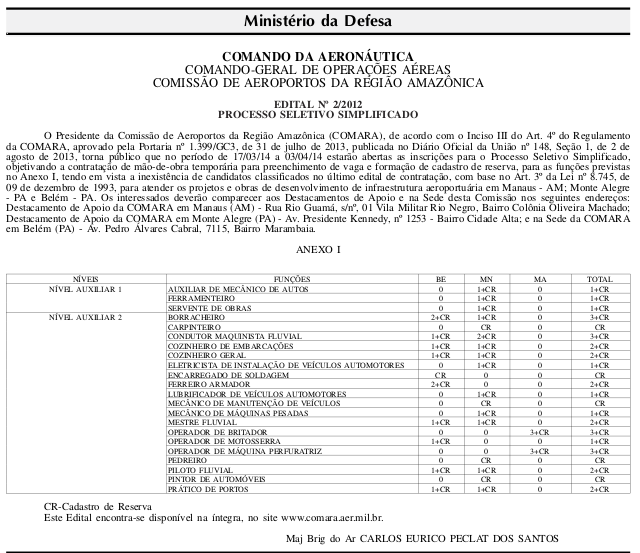 Operários deverão trabalhar nas obras de melhorias da infraestrutura de aeroporto em Manaus, Monte Alegre e Belém. O Edital de Seleção foi publicado no Diário Oficial da União que cicurlou nesta quarta-feira (26).