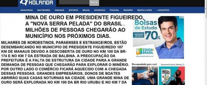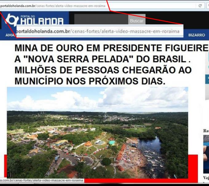 É fácil ver que é uma mentira, começando pelo endereço da matéria, que corresponde a outra, mais especificamente a do massacre em Roraima, não tendo nada a ver com Presidente Figueiredo.