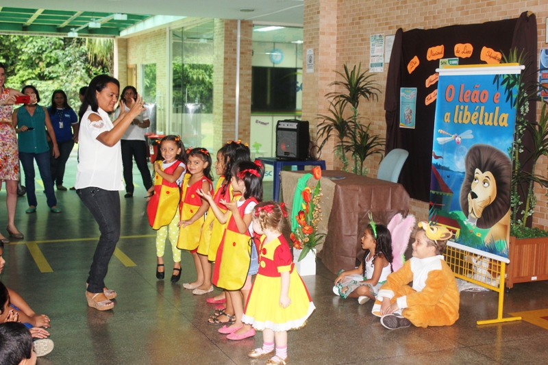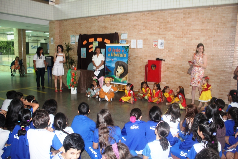 Para uma plateia de cerca de 50 alunos da escola do Sesc, o grupo teatral do Graziela Ribeiro encenou a peça ‘O Leão e a Libélula’, que conta a história da amizade inusitada entre os dois animais e ensina valores como: respeito, amor e preservação do meio ambiente. A encenação é uma adaptação ao livro ‘O Leão e a Libélula’, da escritora amazonense e jornalista Alessandra Karla Leite. Ela participou do evento e mostrou-se feliz por saber que sua obra tem levado crianças a terem contato com a literatura.