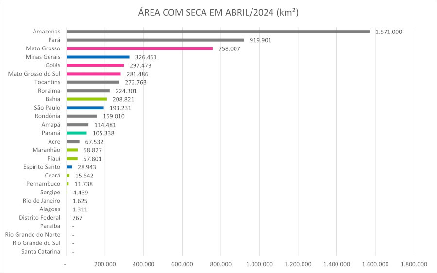 No entanto, entre março e abril, houve um abrandamento do fenômeno em 12 unidades da Federação, conforme a última atualização do Monitor de Secas: Acre, Alagoas, Amazonas, Bahia, Ceará, Goiás, Mato Grosso, Pernambuco, Piauí, Rondônia, Sergipe e Tocantins.