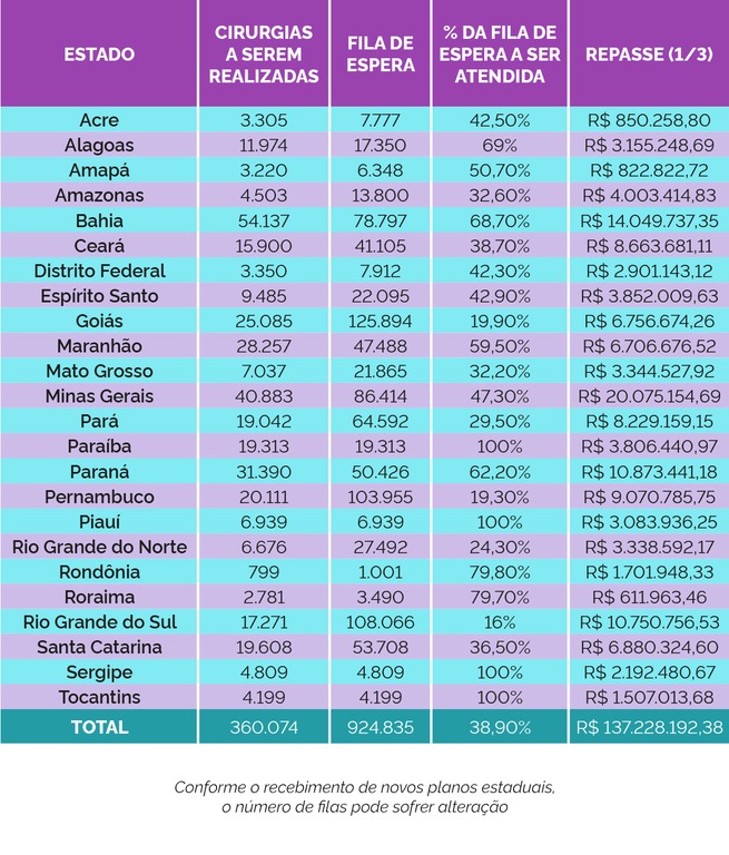 Lista das filas e cirurgias a serem realizadas em 24 estados