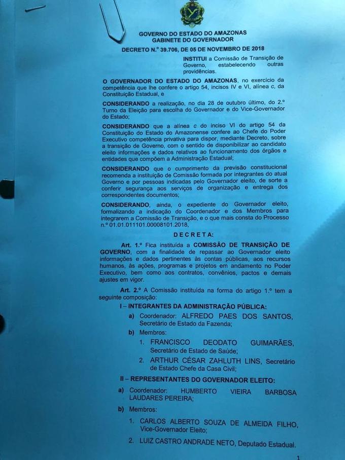 Manaus/AM - O governador Amazonino Mendes (PDT) nomeou os secretários Alfredo Paes, (Sefaz), Francisco Deodato (Susam) E Arthur Lins (Casa Civil) para a comissão de transição do governador eleito Wilson Lima (PSC).