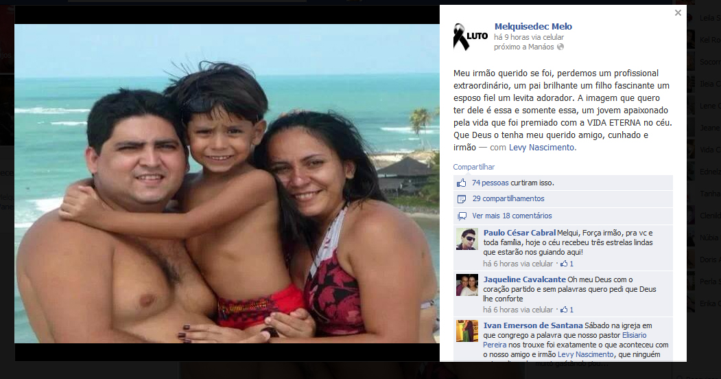 Os amigos do casal Levy Oliveira do Nascimento e Gislaine Mesquita, que morreu juntamente com o filho Ian Levy, de 6 anos, em acidente no quilômetro 235 da BR 174 (Manaus/Boa Vista), manifestaram no Facebook solidariedade a familia no dia de ontem.